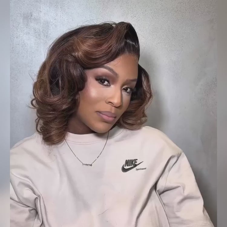 Bob Wig Ombre Brown Color Body Wave HD Lace Frontal Human Hair Wigs - Rafarada