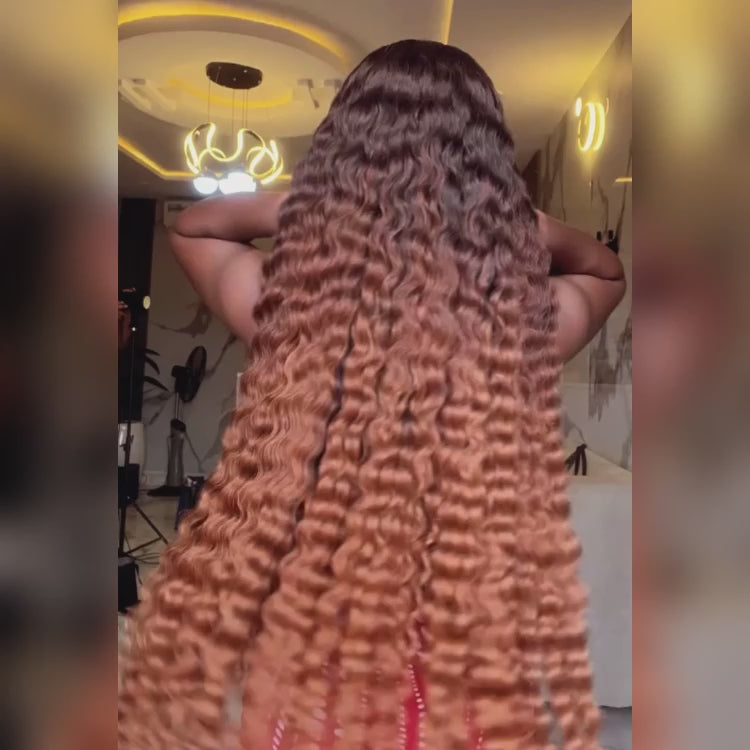 Ombre Color Wig Brown Color Raw Burmese Curly Wave Wig HD Transparent Lace Wigs - Rafarada