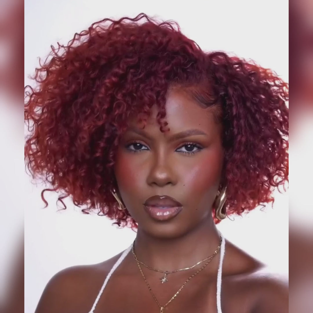 99J Burgundy Jerry Curly Lace Front Human Hair Wigs Short Bob Curly Wig Red Wine Wig - Rafarada