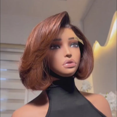 Bob Straight Chestnut Brown Color Lace Frontal Human Hair Wig Side Part Wig - Rafarada