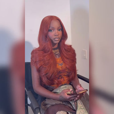 Body Wave Wig 100% Human Hair Glueless Wig Ginger Orange Color Wig - Rafarada