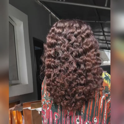 Chocolate Brown Burmese Lace Front Human Hair Wigs Reddish Brown Curly Wig for Women Pre-plucked Glueless HD Lace Wig - Rafarada