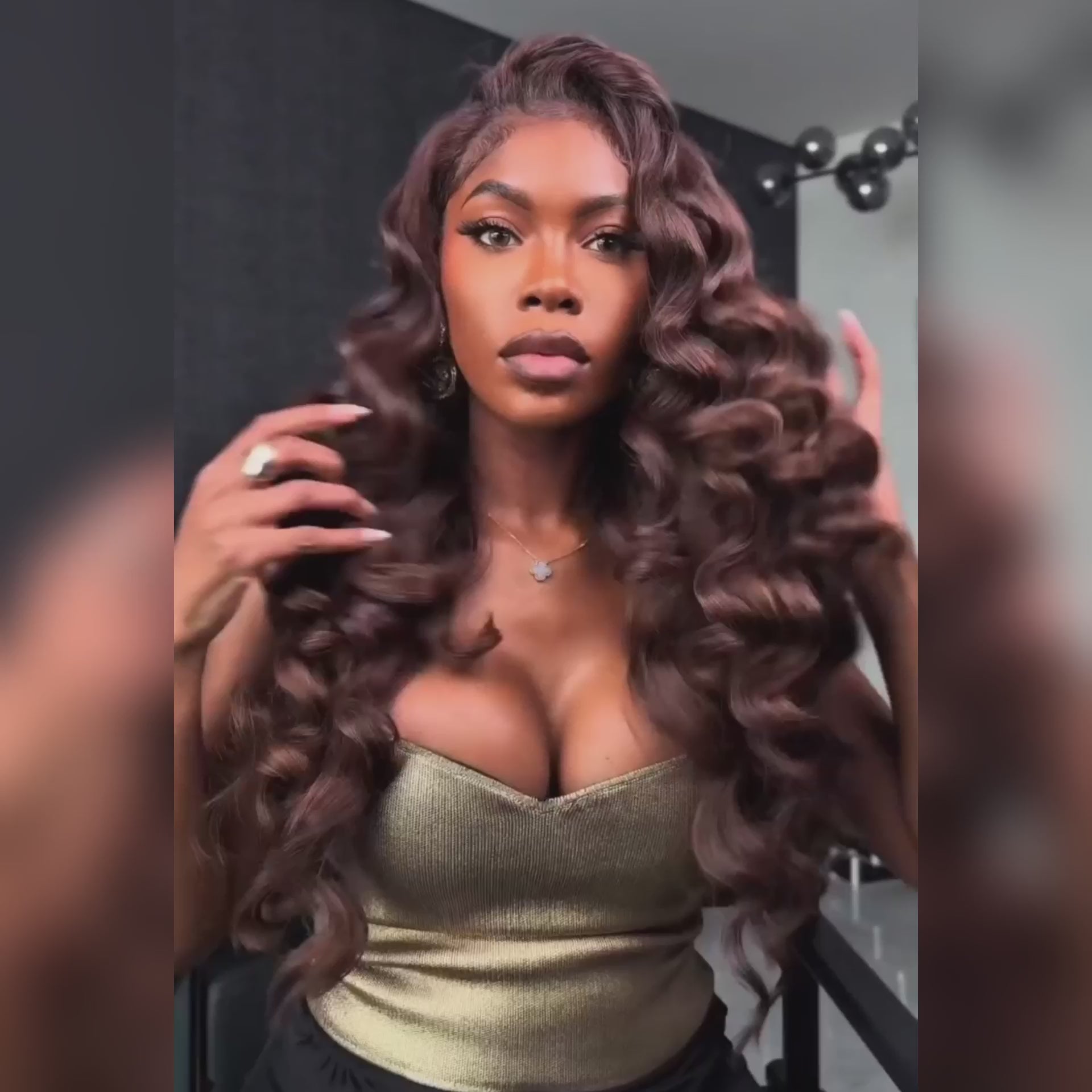 Chocolate Brown Color Loose Wave Wig Wear Go Glueless Wig Pre-cut Lace Wig - Rafarada