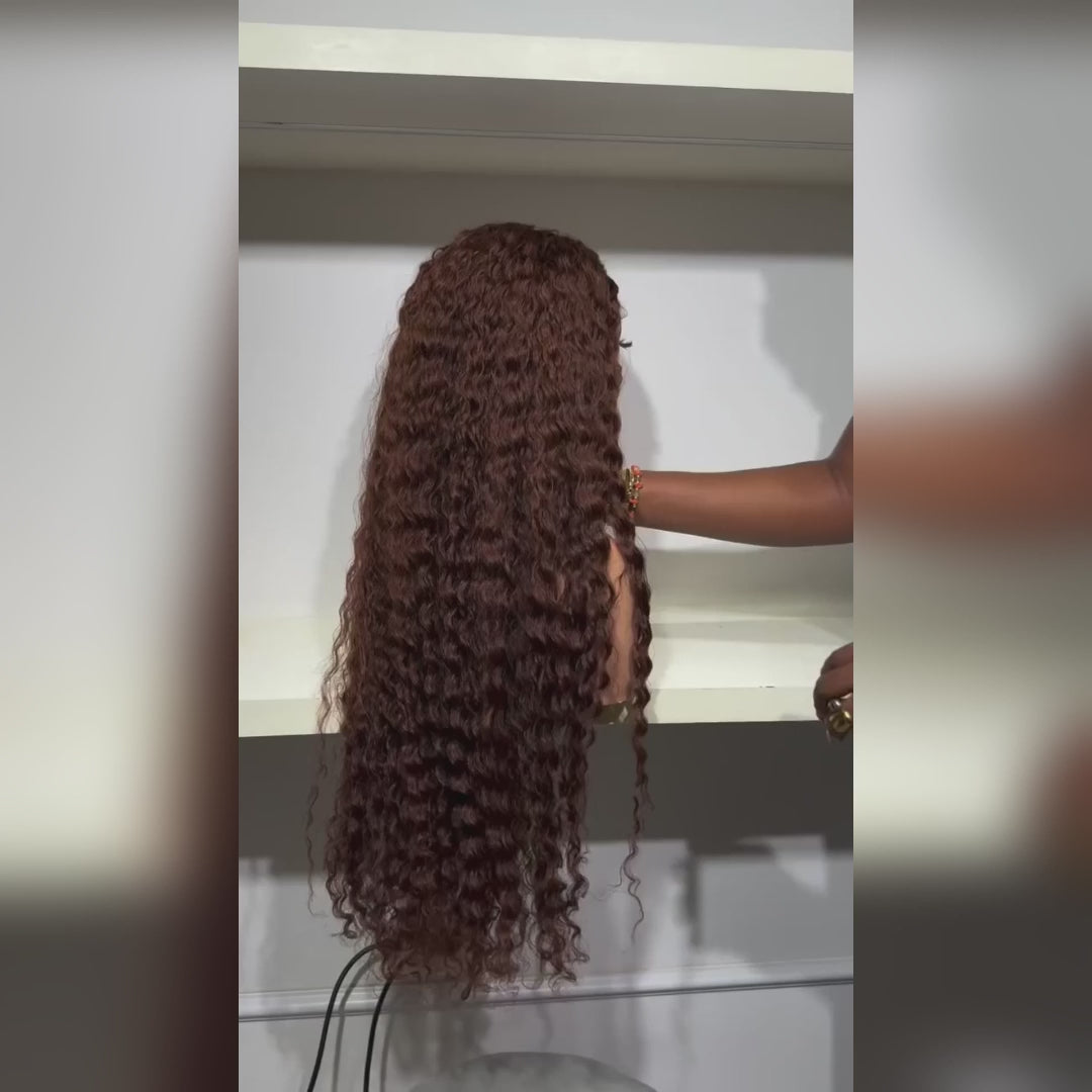 Chocolate Brown Deep Wave Wigs HD Transparent Lace Frontal Human Hair Wigs - Rafarada
