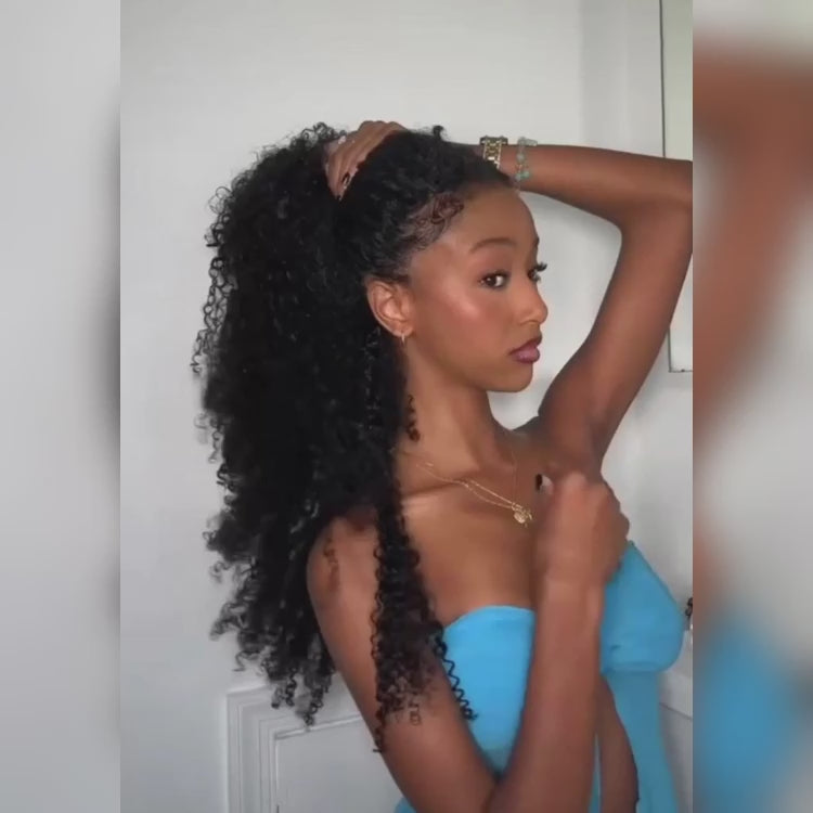 Clip-In Hair Extensions 100% Human Hair Kinky Curly Wave Clip In Hair- Rafarada