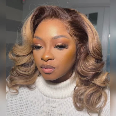 Colored Loose Wave Bob Wig Blonde Highlight Human Hair HD Transparent Lace Wigs - Rafarada