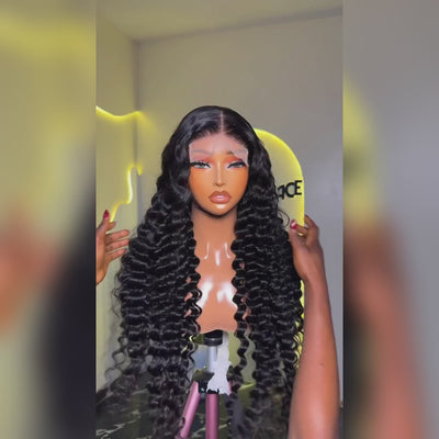 Deep Wave Glueless HD Transparent Lace Front Wig Pre Plucked Pre Bleached Human Hair Wig - Rafarada