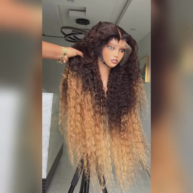Deep Wave Ombre Brown Highlight Color Lace Front Wig Human Hair Wig - Rafarada