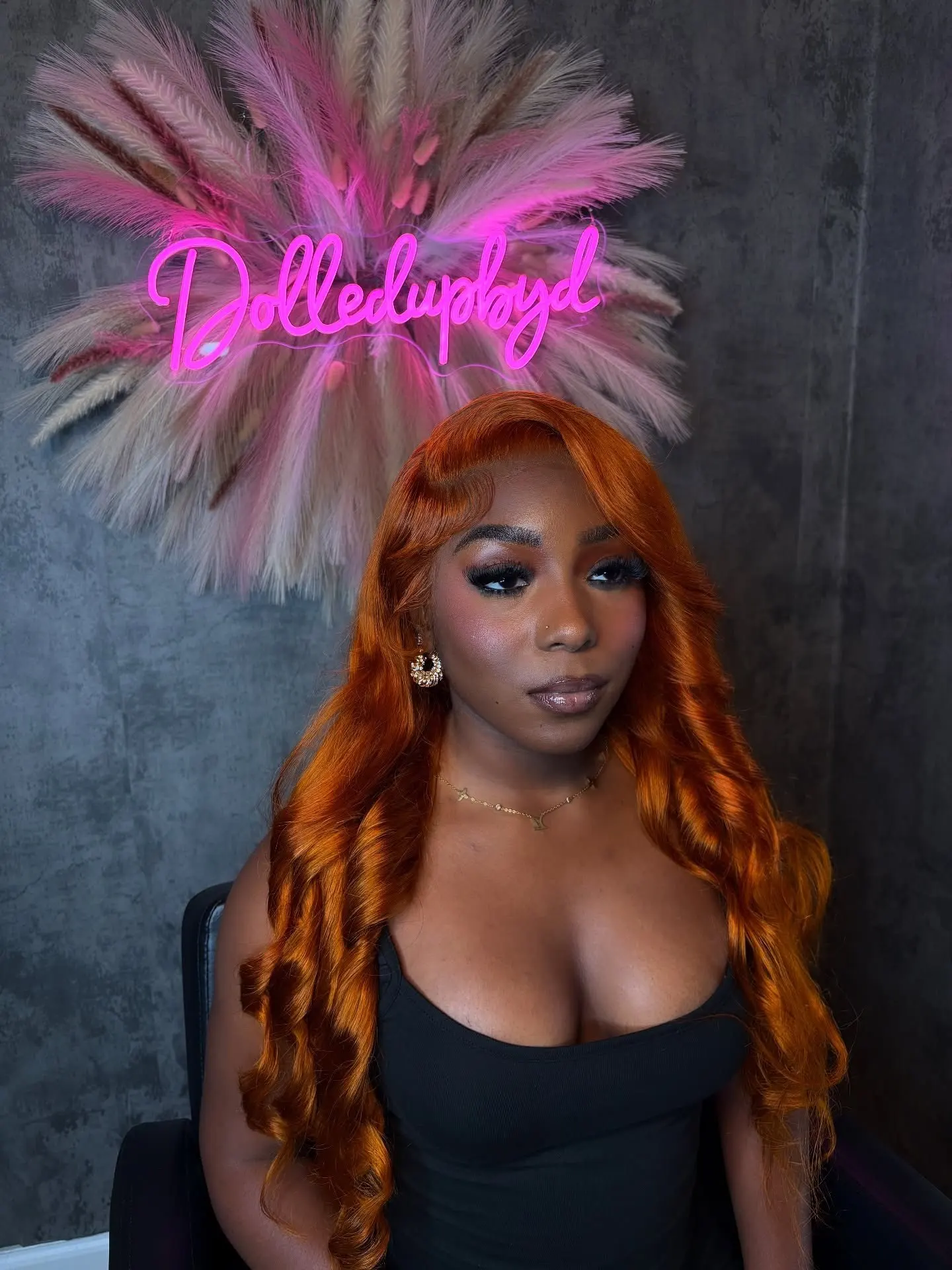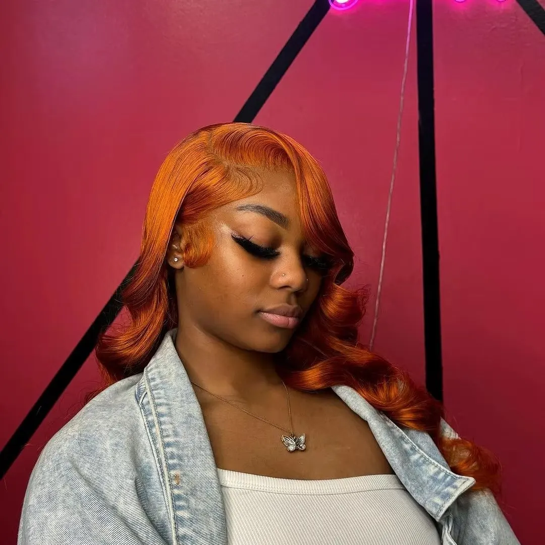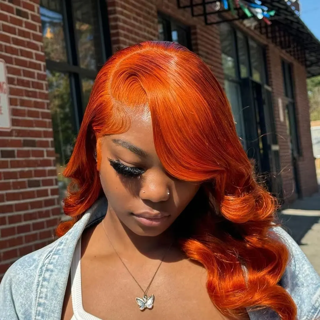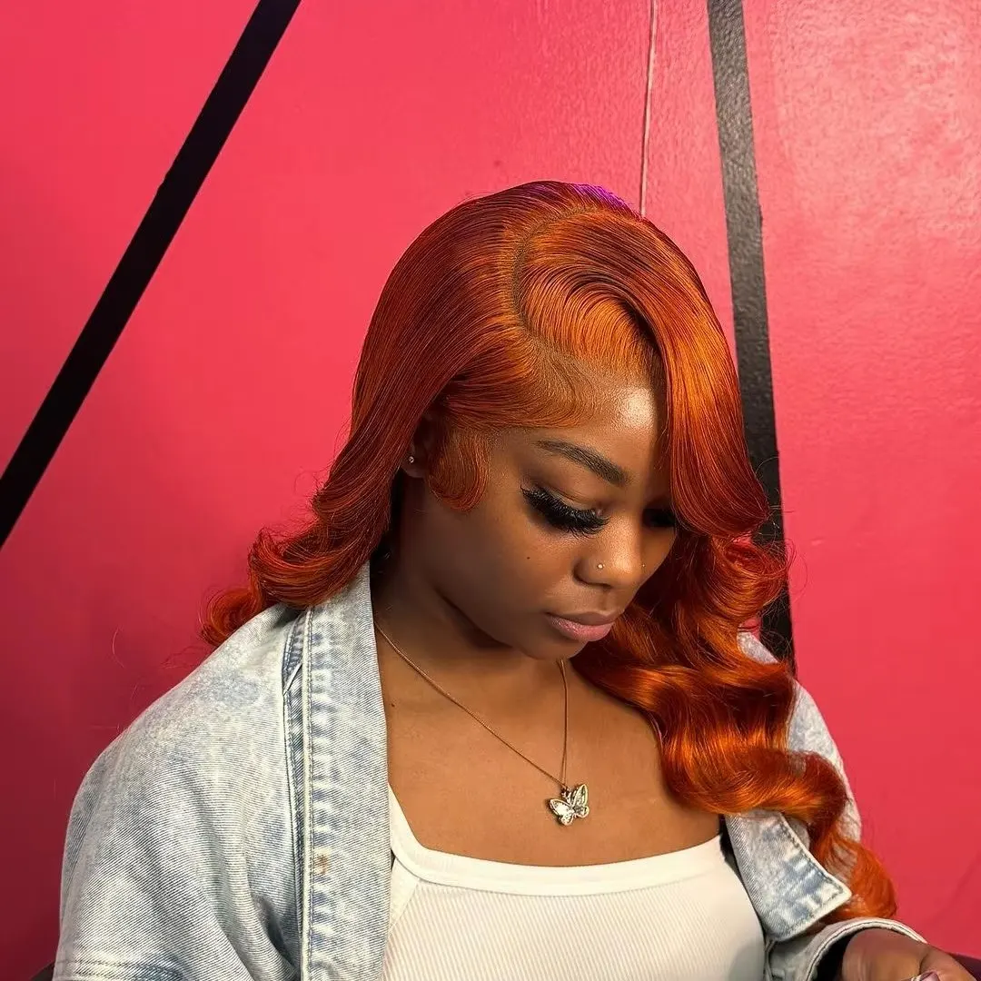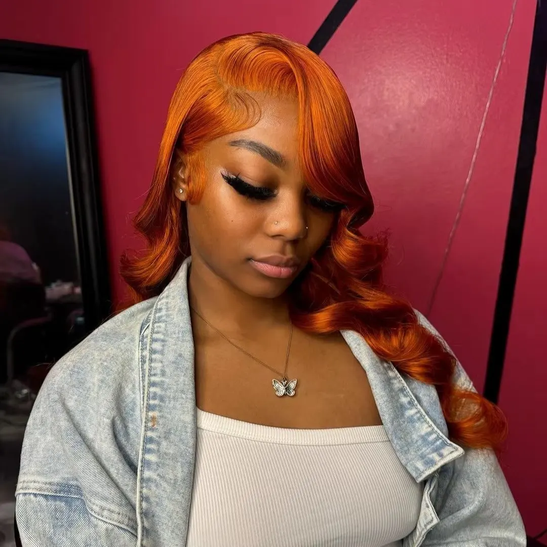 Ginger Color Body Wave Human Hair Wig Ombre Brown Color Lace Front Wig - Rafarada