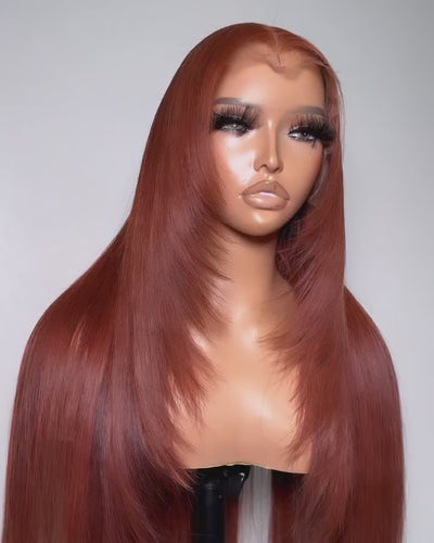 Ginger Layered Butterfly Hair Cut Straight HD Lace Closure Human Hair Wigs- Rafarada
