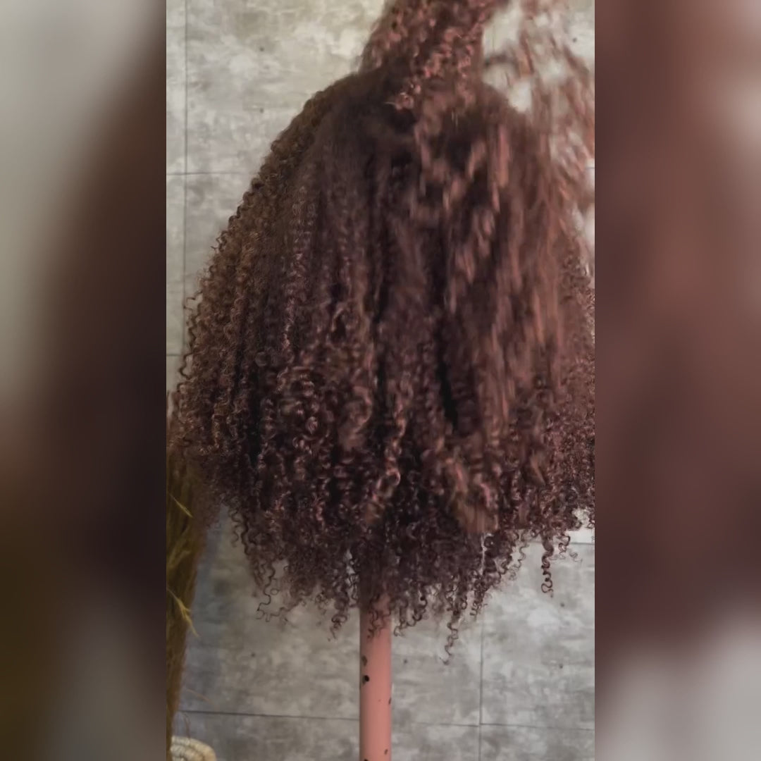 Glueless Afro Curl Deep Auburn Tones and Defined Voluminous Curls Human Hair Lace Wig With 4C Edges - Rafarada