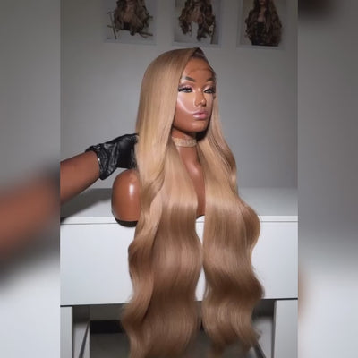 Honey Blonde Color Body Wave Human Hair Wig HD Lace Front Gold Colored Wig - Rafarada