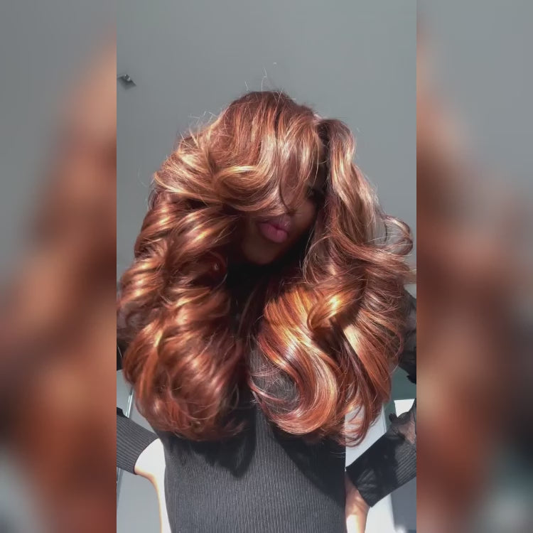 Honey Blonde Highlight Wear & Go Glueless Bouncy Body Wave Lace Front Human Hair Wigs - Rafarada