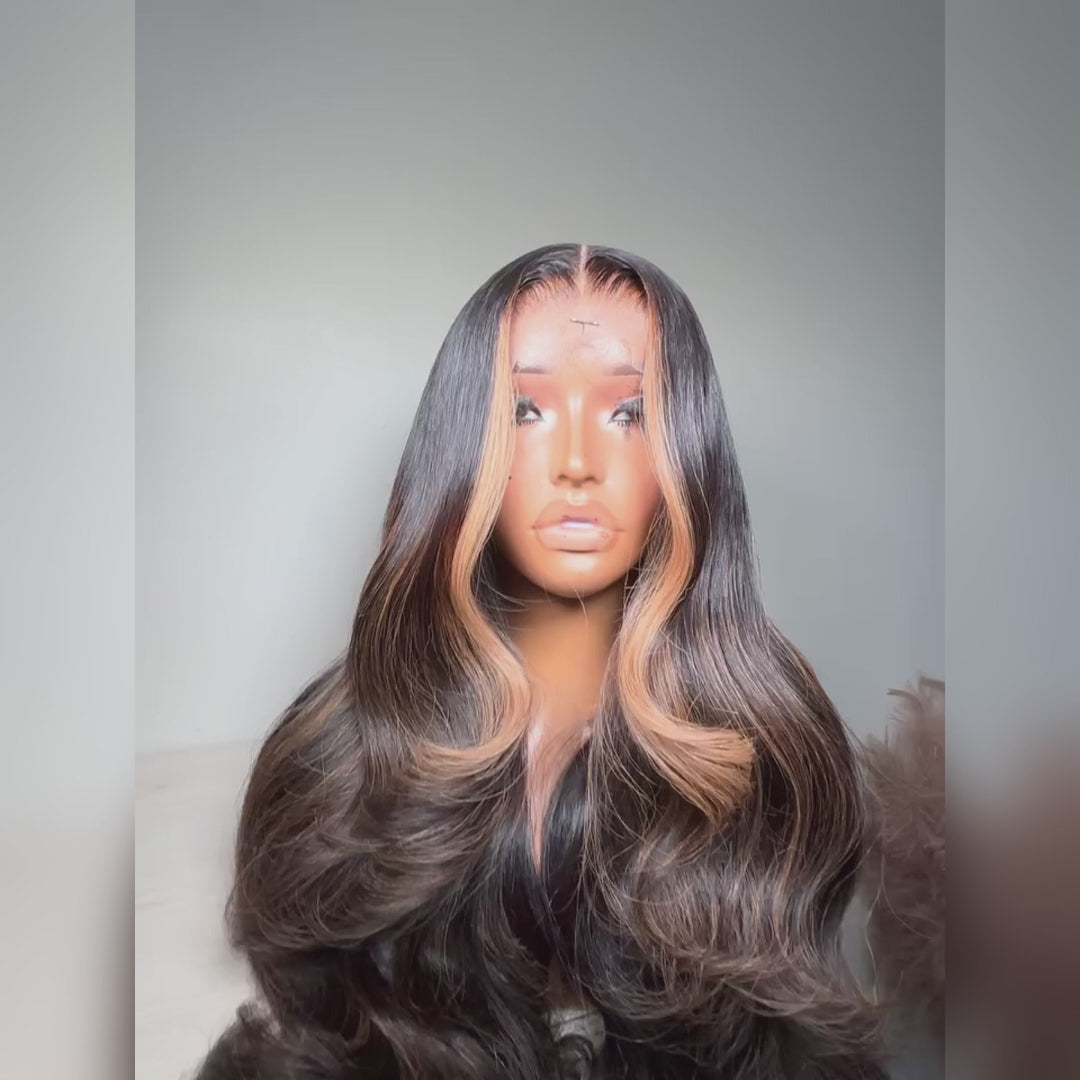 Honey Blonde Money Piece Highlight Body Wave Lace Front Wig Face-Framing Bouncy Curls Long Wavy Wig - Rafarada