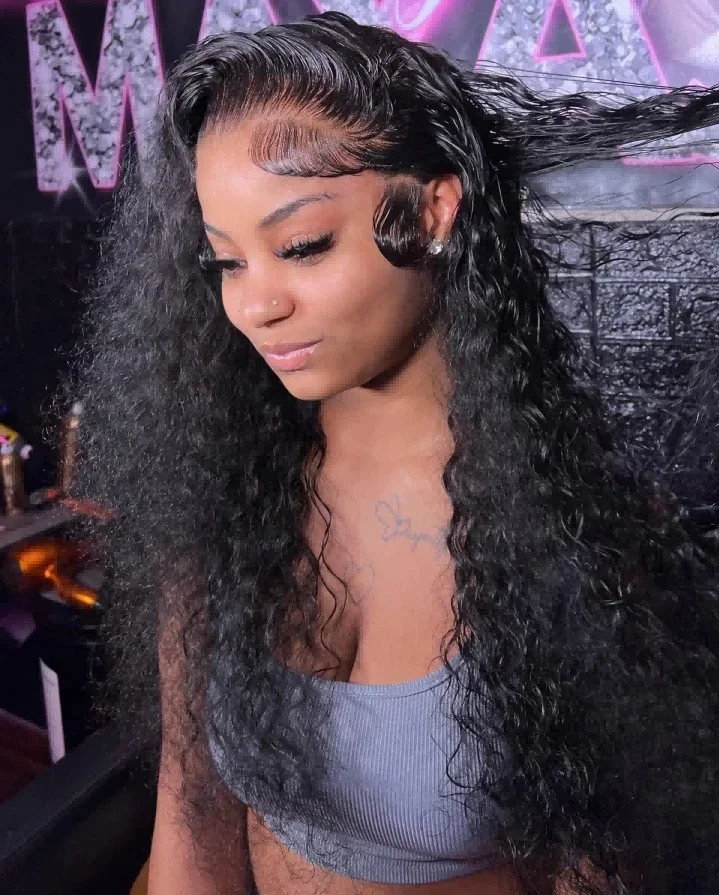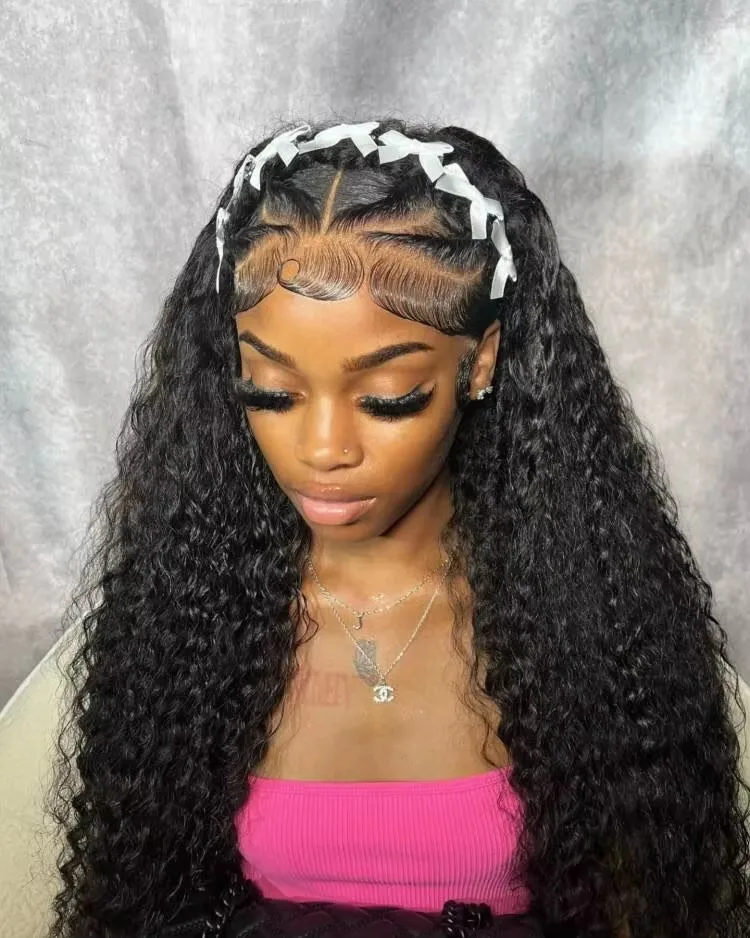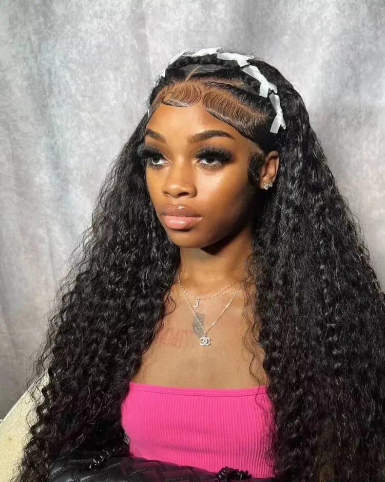 Long Curly Hair Wigs Glueless HD Transparent Lace Frontal Human Hair Wig- Rafarada