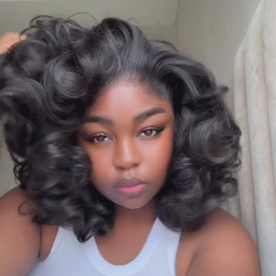 Loose Wave Bob Wig Natural Black Short Bob Glueless Human Hair Lace Wig for Beginner - Rafarada