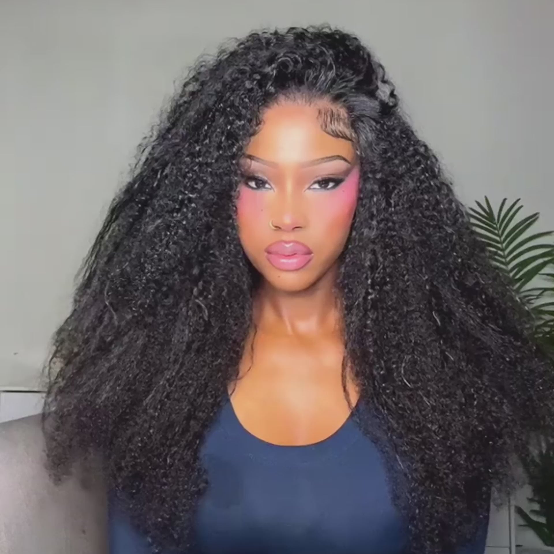 Multi Texture Kinky Straight With Afro Curly Wig HD Lace Frontal Thick Curly Hair Glueless Wigs- Rafarada