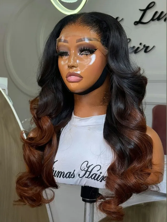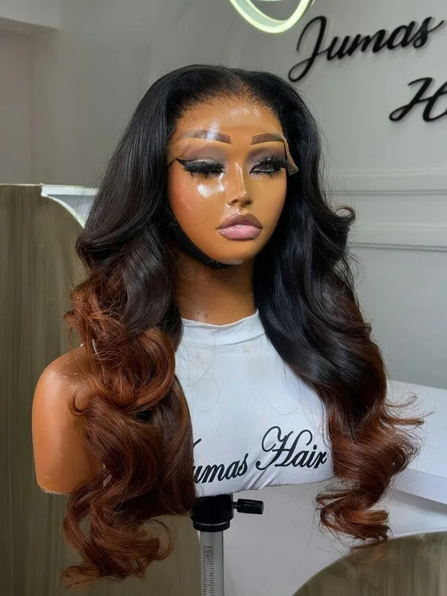 Ombre Black and Brown Human Hair Body Wave Wig Lace Front Wig - Rafarada
