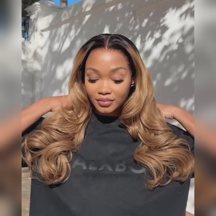 Ombre Black Gold Color Body Wave Wig Pre-Plucked HD Lace Front Human Hair Wig- Rafarada