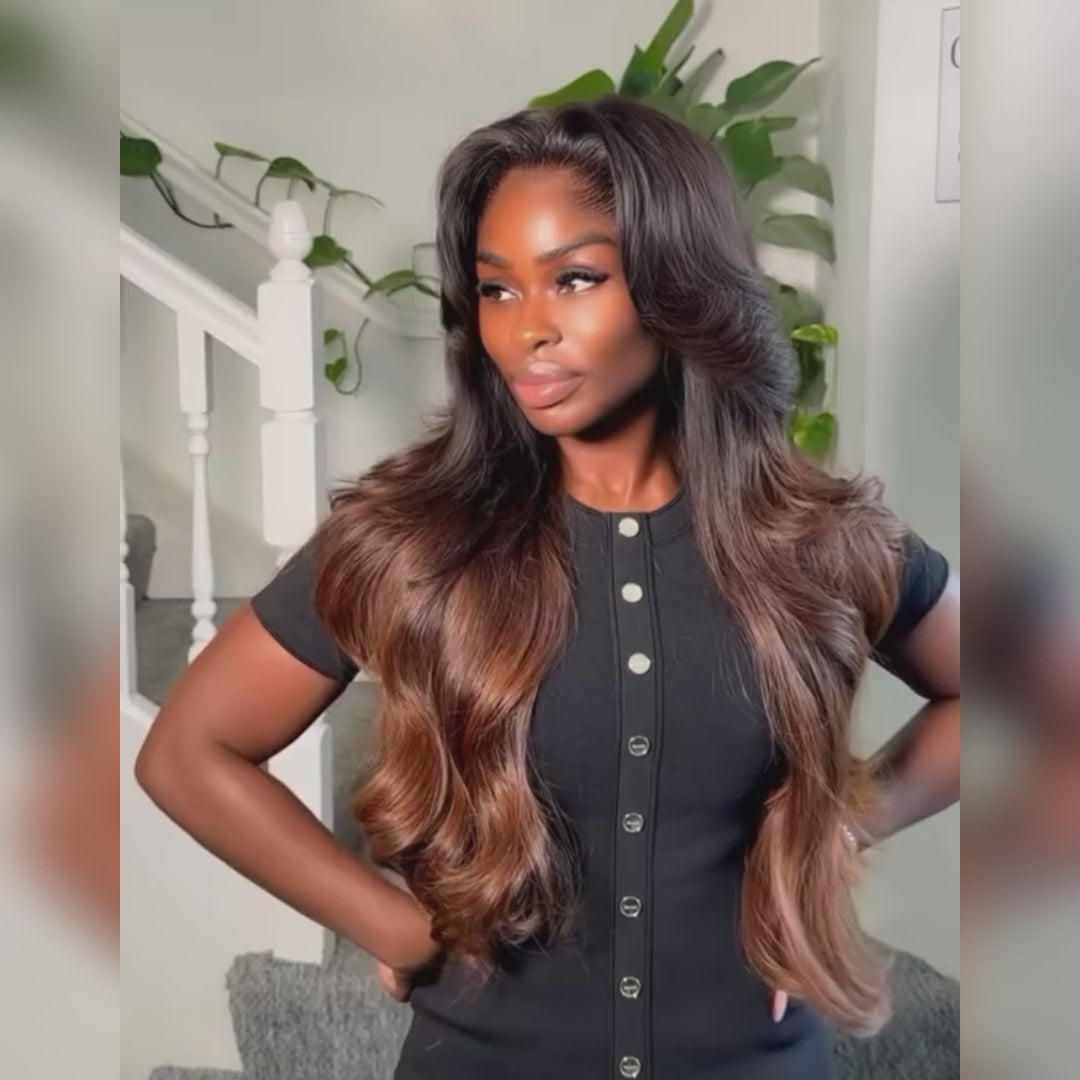 Ombre Black to Honey Blonde Body Wave Lace Front Wig 100% Human Hair Natural Hairline - Rafarada