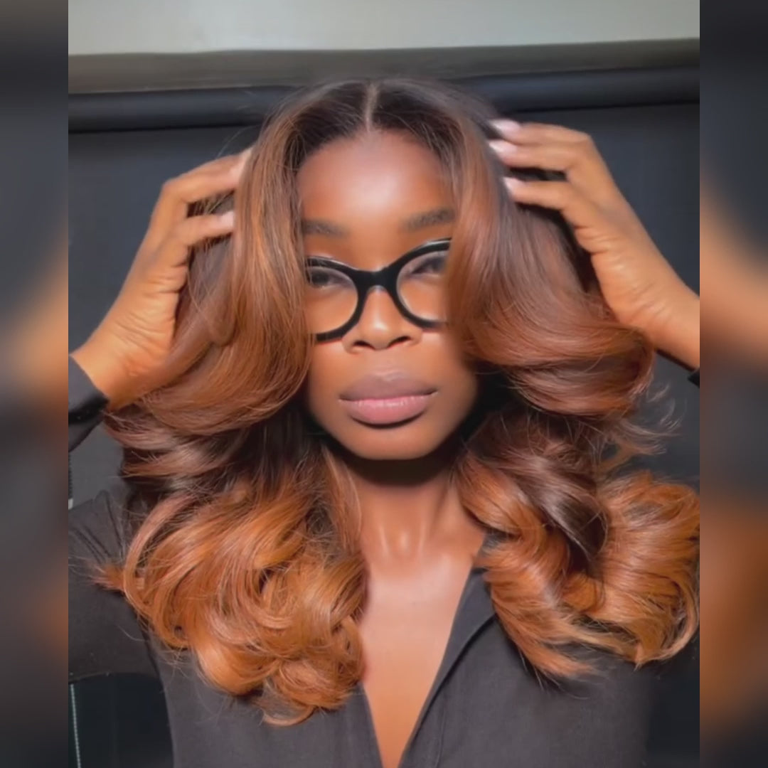 Ombre Caramel Copper Balayage Loose Wave Lace Front Human Hair Wigs Pre-Plucked Bouncy Butterfly Cut Layered Wig - Rafarada