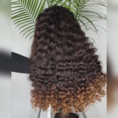 Ombre Color Wig Brown Color Raw Burmese Curly Wave Wig HD Transparent Lace Wigs - Rafarada