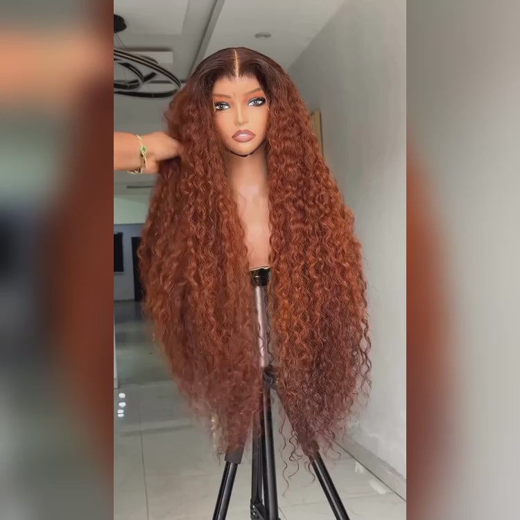 Ombre Dark Brown Ginger Lace Front Wig Water Wave Human Hair Wig - Rafarada