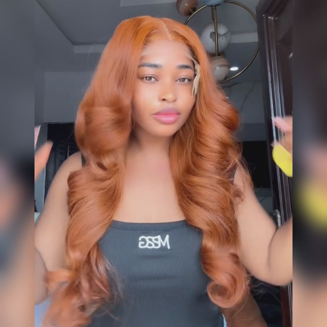 Ginger Color Loose Wave Human Hair Wig HD Lace Front Wig Pre Plucked Wig - Rafarada