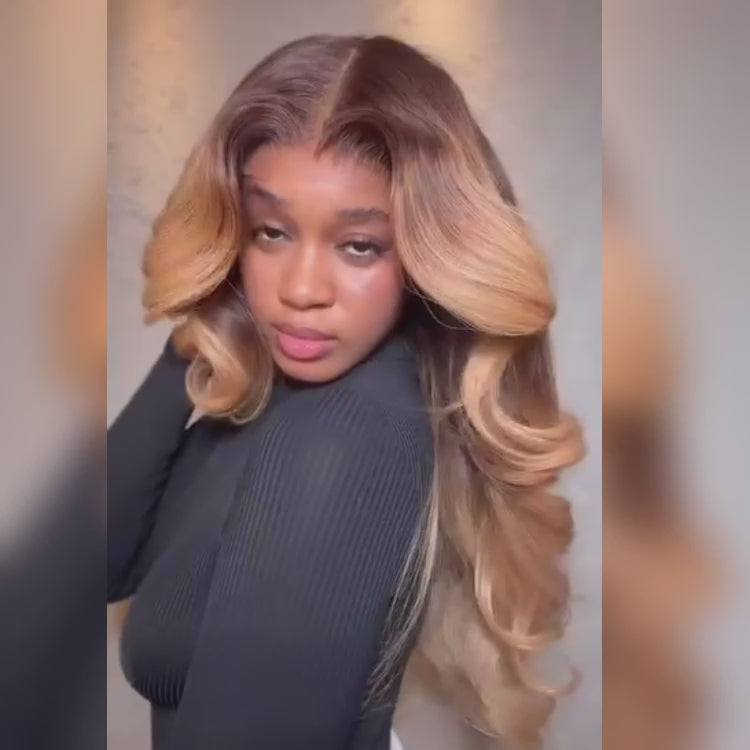 Ombre Honey Blonde Color Body Wave Wig Pre Plucked Human Hair Wig - Rafarada