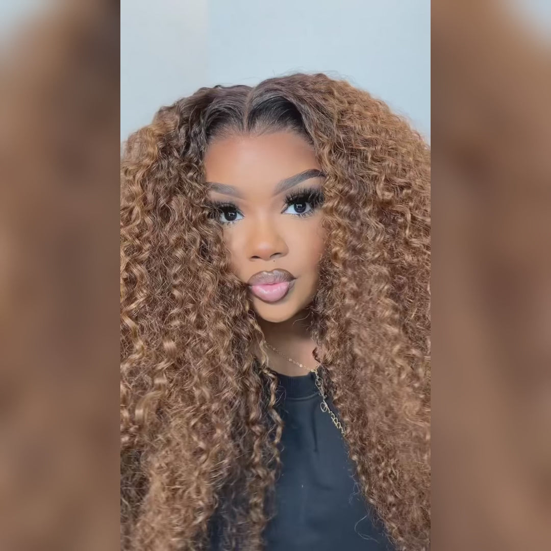 Ombre Light Brown Color Kinky Curly Wig 100% Human Hair Wig Pre Plucked Natural Hairline - Rafarada