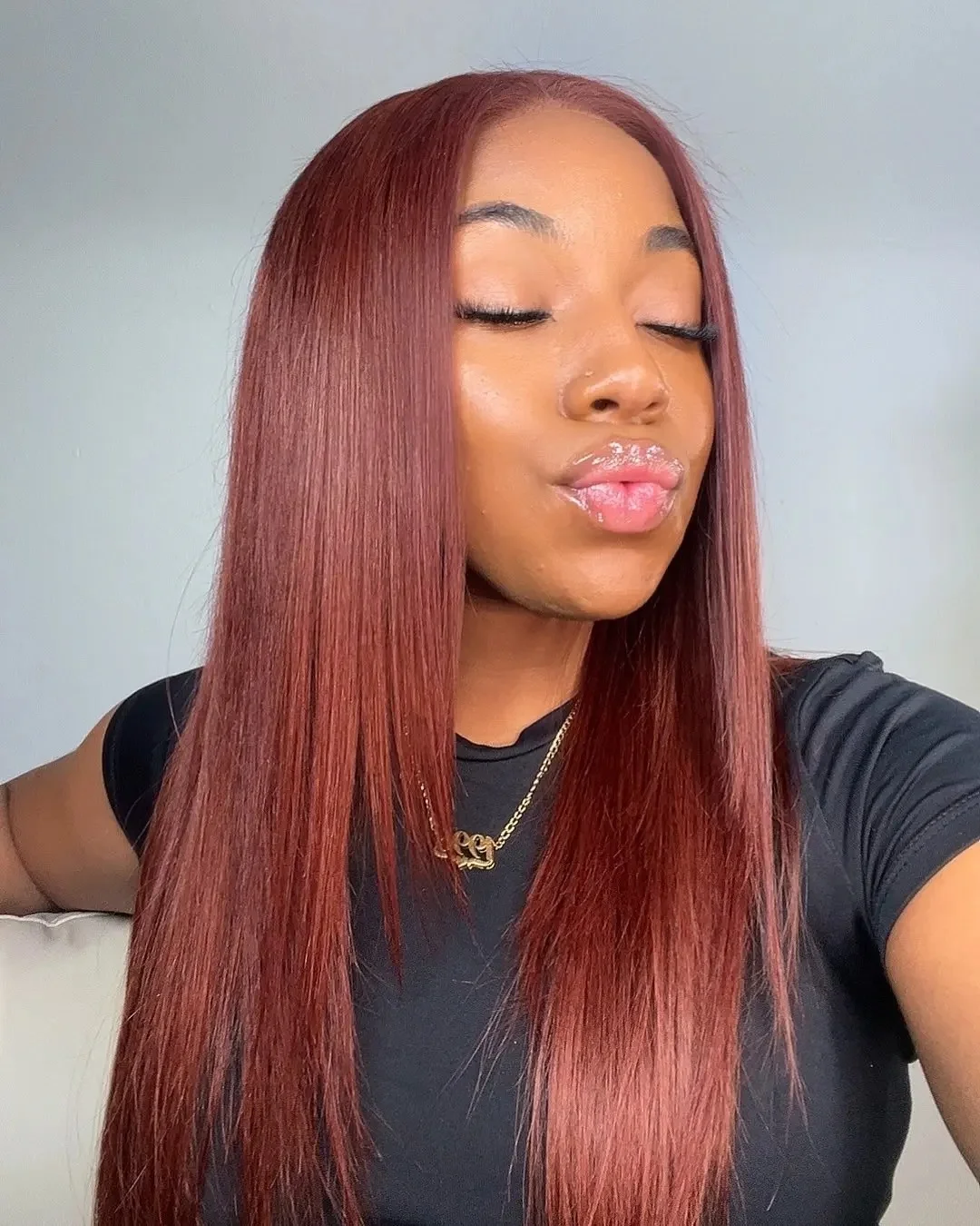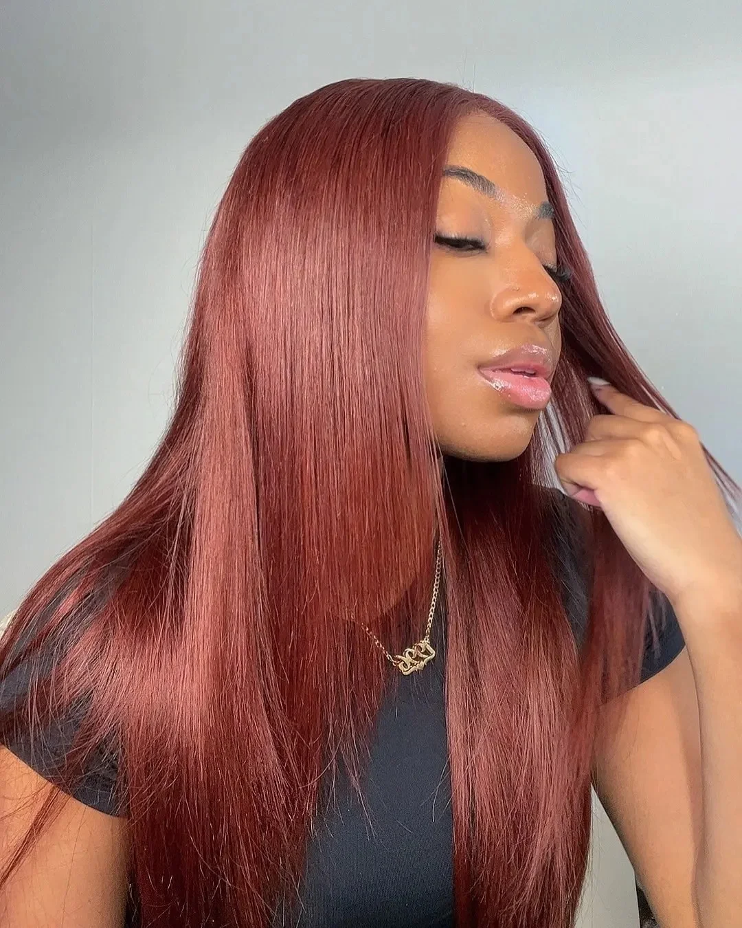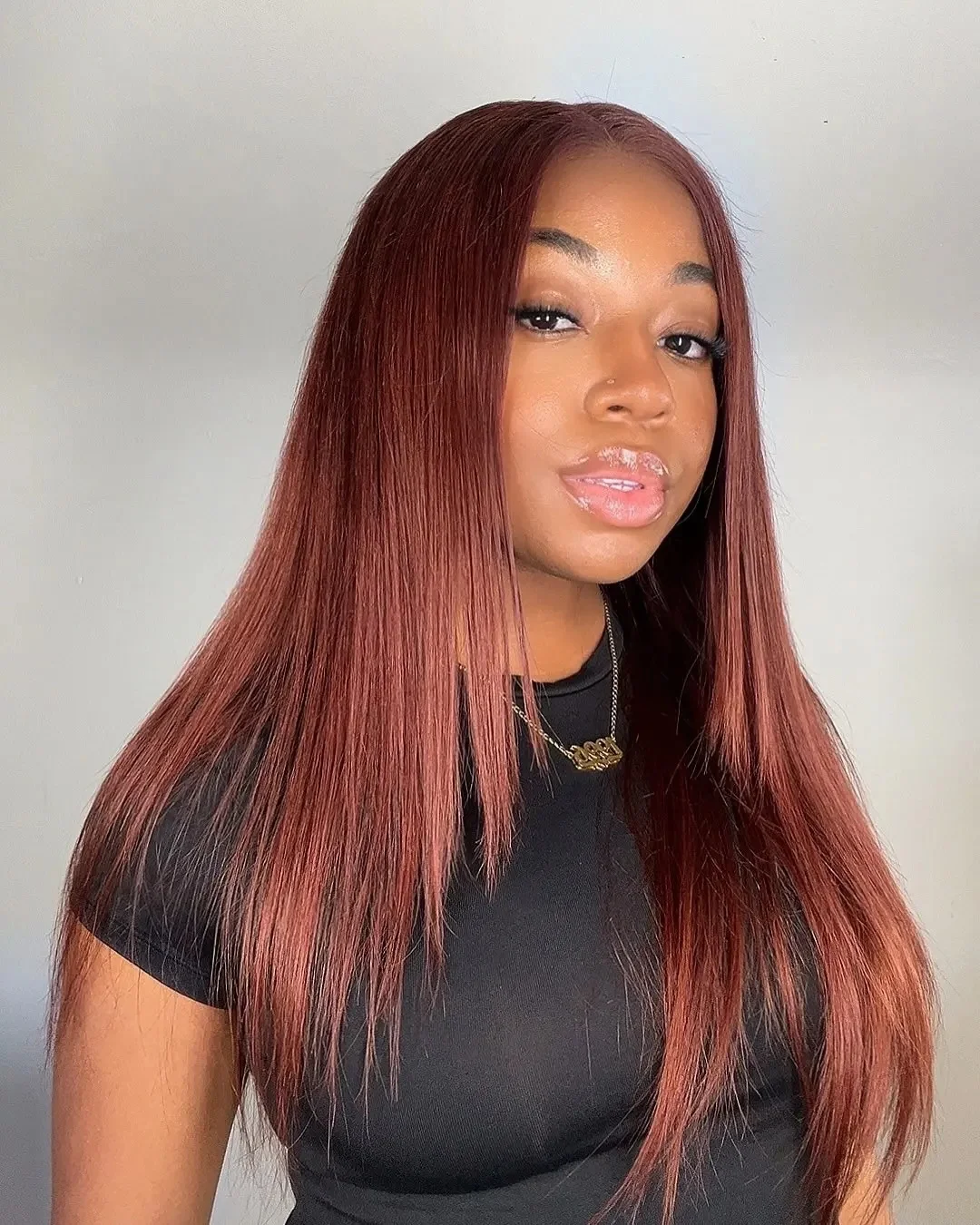 Reddish Brown Glueless Wig Pre- cut for Beginners Straight Hair HD Lace Human Hair Wigs- Rafarada