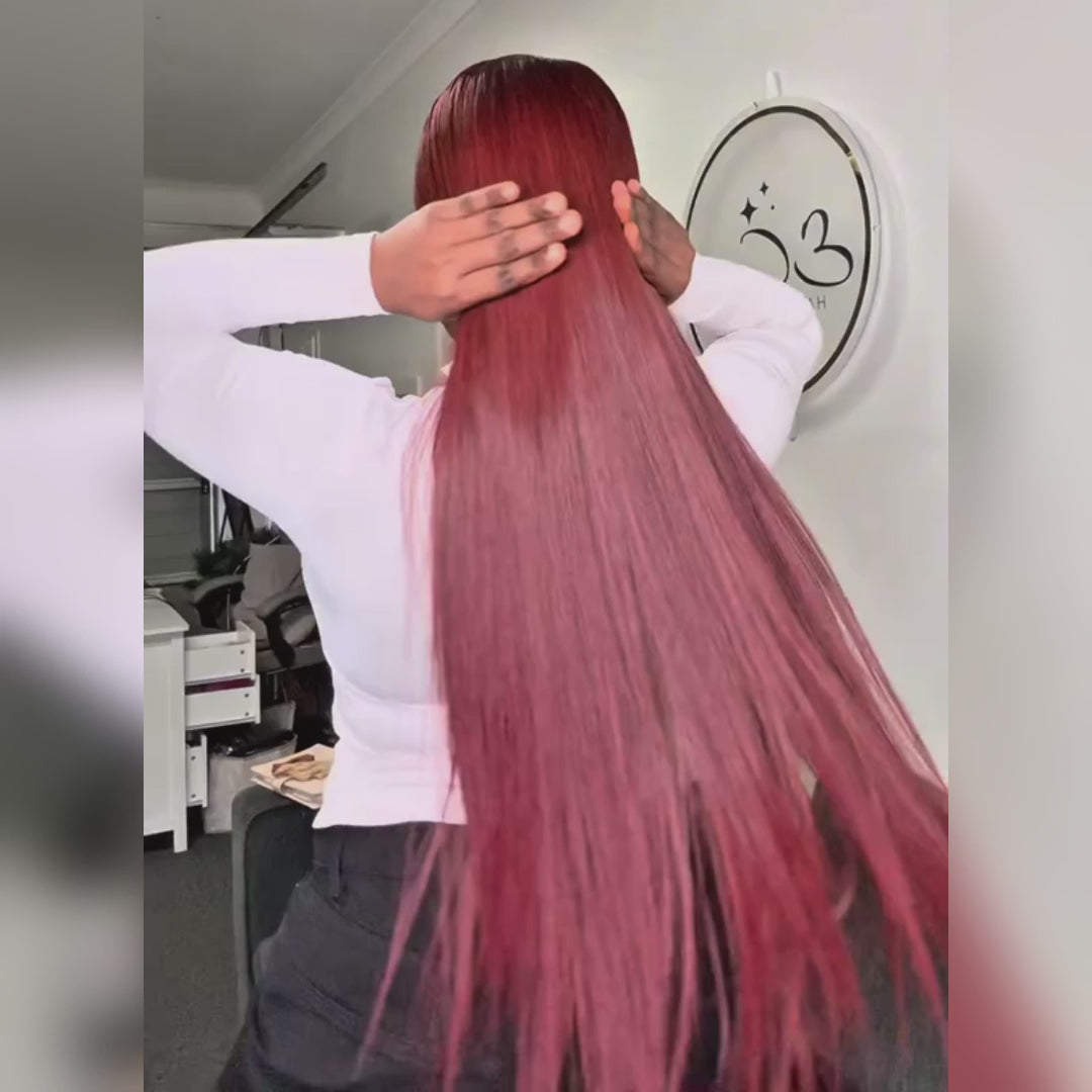 Reddish Color Straight 100% Human Hair Wigs HD Transparent Lace Wig - Rafarada